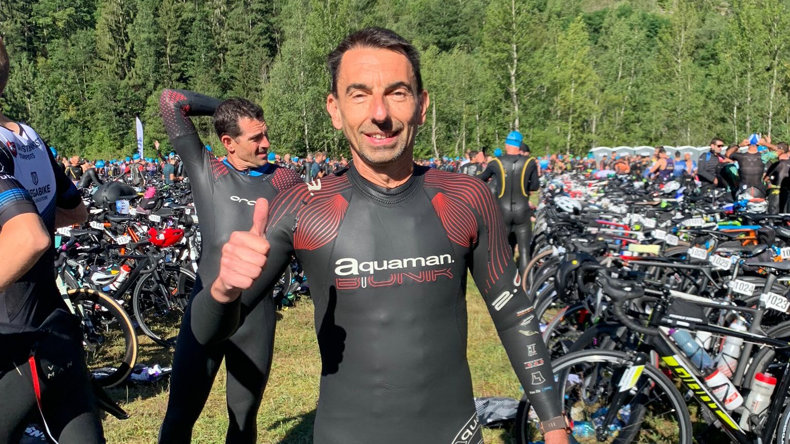 In der Triathlonszene ist auch dieser Anstieg seit 2006 fester Bestandteil im Terminkalender und am 27. Juli 2023 fiel der Startschuss für unseren Jürgen. Vor ihm lagen 2.2km Schwimmen, 118km mit 3200 Höhenmetern auf dem Rad und dann noch 20km mit 340 Höhenmeter Laufen. Jede einzelne Disziplin hat dabei ihre Besonderheit. Das Schwimmen startete im 16 Grad kalten Stausee, dessen Pumpen zur Stromerzeugung eigens für den Wettkampf abgeschaltet werden. Wobei die 16 Grad vom Veranstalter schon gefeiert wurden. Oft hat der Stausee am Wettkampftag nur 14 oder 15 Grad. Nach dem Schwimmen hieß es erst einmal „warmfahren“ für den finalen Anstieg. Es mussten gut 100km mit 2200 Höhnmeter bewältigt werden. Auf der Strecke warteten drei knackige Anstiege auf die Teilnehmer: Die Alpe de Grand Serre (1375m), der Col du Malisol (1153m) und der Col d‘ Ornon (1371m), bevor es dann die 21 Serpentinen mit über 1100 Höhenmeter hinauf nach Alp d‘Huez ging. Oben angekommen runter vom Rad und die Lauf- bzw. Trailschuhe schnüren. Es waren drei Runden a 6,7km und über 110 Höhenmeter auf über 1850m Höhe zu absolvieren. Neben der stattlichen Anzahl an Höhenmetern war ein weiteres Highlight jede Runde die Landebahn des Flughafens von Alp d‘Huez mit 16% Gefälle hinunterzulaufen. Nach 10:36h und Platz 53 von 104 Teilnehmern in der AK55 konnte Jürgen die Ziellinie überqueren. Die fast 9 monatige Vorbereitung hatte sich auf jeden Fall gelohnt und die Erinnerungen werden noch lange im Gedächtnis bleiben. Hut ab Jürgen für diese Leistung!