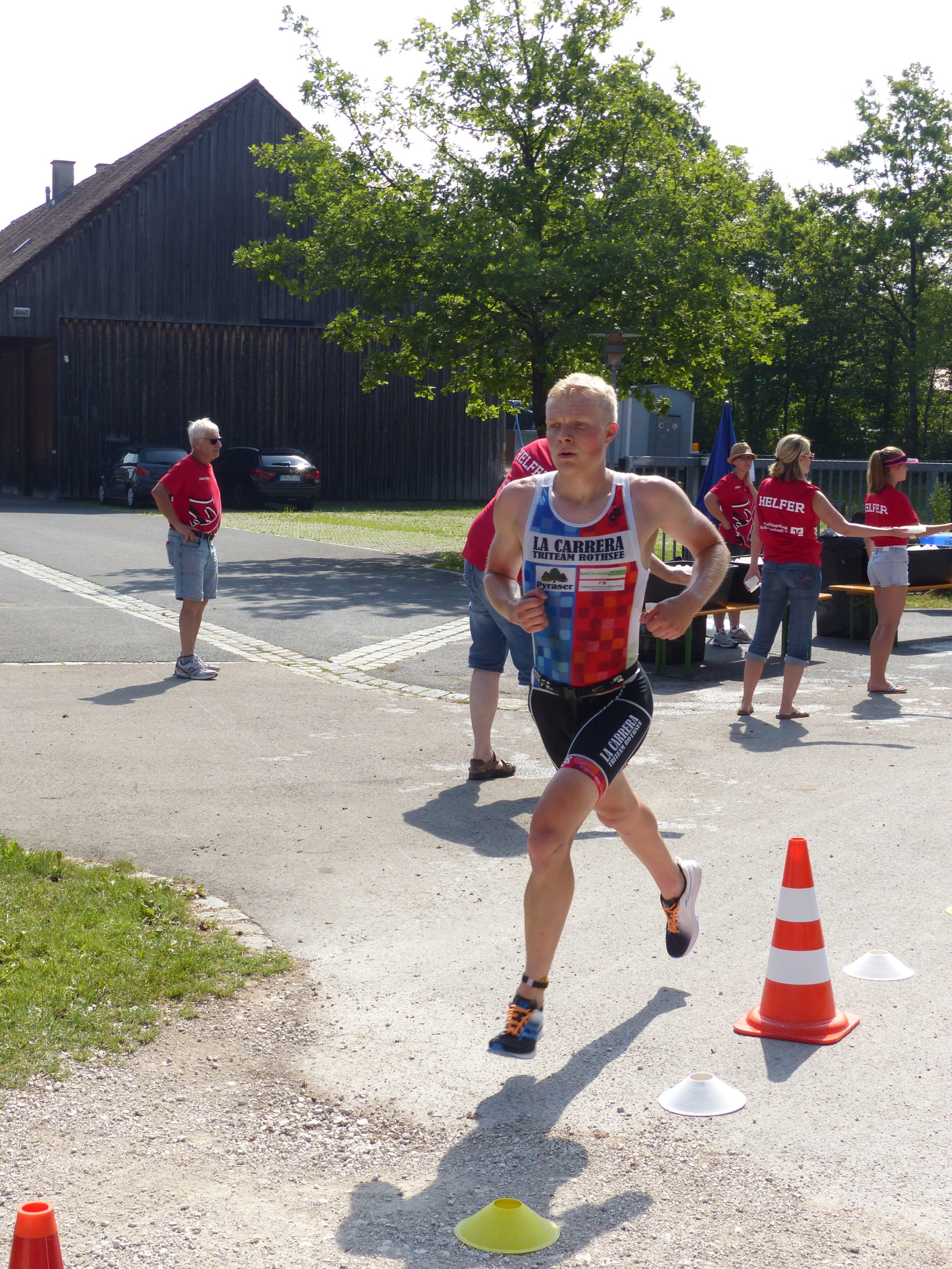Schnellster La Carrera war hier Tim Frisch bei seiner Premiere über 1500m, 42km, 10km. Er konnte sich mit einer starken Schwimm (3.) – und Radleistung (6.) den 7. Gesamtplatz holen (2. TM20) und wurde mittelfränkischer Meister in seiner Altersklasse. In der mittelfränkischen Gesamtwertung bedeutete dies den 3. Rang. Auf Gesamtplatz 10 folgte Matthias Seitz, der sich über den mittelfränkischen Meistertitel in der M35 freuen konnte. Auch Adrian Lober auf Gesamtplatz 13 konnte sich mit AK-Platz 2 den mittelfränkischen Meistertitel in der M25 sichern. In der Besetzung Tim, Matze, Adrian landeten unsere Herren auf dem 3. Platz in der Mannschaftswertung. Ebenfalls einen Podiumsplatz konnte Ingo Macher ergattern, der mit dem 2. Platz in der M45 mittelfränkischer Meister in dieser Altersklasse wurde.