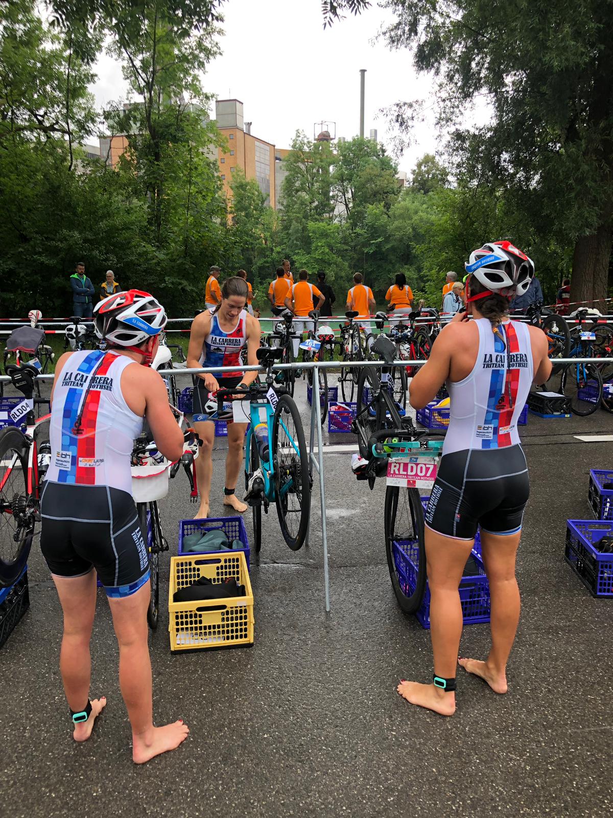 Geschwommen wurde die 1,5 km-Strecke im aufgestauten, 17,7 Grad kalten Lech, wo der Neo dringend erforderlich war. Anschließend mussten dann bei regennasser Straße zwei 20 km-Runden mit dem Rennrad absolviert werden, wo einige giftige Anstiege – teilweise mit Kopfsteinpflaster – und zahlreiche scharfe Kurven alles abverlangten. Die abschließende Laufstrecke verlief quer durch die Schongauer Altstadt und umfasste vier Runden à 2,5km. Nicht die einfachsten Bedingungen bei dem nass-kalten Wetter, wo es in anderen Teams sogar zu Stürzen auf der Radstrecke kam!