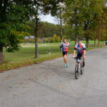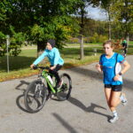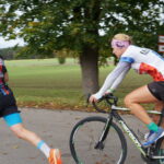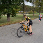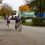 Nachdem der eigentliche Termin im wahrsten Sinne des Wortes ins Wasser gefallen ist, war der auf gestern kurzfristig angelegte Termin bei ein paar Wolken und viel Sonne mit Lauftemperaturen um die 14 Grad perfekt für unser diesjähriges Run&Bike. Hier teilt sich ein Zweierteam ein Fahrrad und vollzieht mehrfach einen “fliegenden” Wechsel. Geschuldet des engen Terminplans, der kurzfristigen Planung und diverser Vorverletzungen gab es heuer mehr Zuschauer als Teilnehmer. Somit hat sich die Jugend U18 einstimmig entschieden keine Extrawertung zu bekommen und durfte mit einem kurzen Vorsprung 15 Sekunden vor den Erwachsenen auf die 2,4km lange Strecke starten. Diese musste diesmal auch von der Jugend 3x gelaufen und geradelt werden. In der ersten Runde war das führende Jugendteam sogar noch an der Spitze, aber dann haben sich die anschließenden Sieger Thomas Unger/Ingo Macher beim Radwechsel eingespielt – den sie kurz vor Start gerade mal 3 Minuten geübt hatten – und haben mit einer Gesamtzeit von 25:36 den ersten Platz belegt. Nachdem sie ab Runde 2 ordentlich aufgedreht haben, kamen kurz darauf mit 26:20 Romina Siebentritt/Matthias Seitz ins Ziel gefolgt von Lennart Walter/Aaron Weigel mit einer Gesamtzeit von 27:53 und Anne Weigel/Julian Gründel mit einer Zeit von 32:55. Trotz der harten 3 Runden mit den Erwachsenen hat sich die Jugend gut geschlagen und wird nächstes Jahr sicher wieder ein paar Sekunden gut machen.