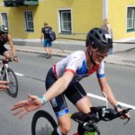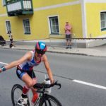 Die Radstrecke hatte 90km und dazu 980 Höhenmeter, inkl. Anstieg auf den Filzensattel, der das Highlight war: 7,5km in Kehren nur bergauf nach Dienten am Hochkönig. Am Ende wurde es 15 Prozent steil. Danach folgte eine Abfahrt, die es in sich hatte, sowie schöne Wellen durch die Berge von Saalfelden. Zur Freude der Athleten herrschte wenig Wind auf der Strecke. Resi hatte super Druck auf dem Pedal und benötigte 2:41:07, Flo war 2:47:32h unterwegs.