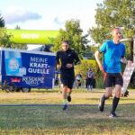 Natürlich gibt es ambitioniertere Läufer und andere die es gerne etwas ruhiger angehen aber sicher kann man sagen, dass die über 250 Teilnehmer eine Menge Spaß hatten. Vor allem weil sich das Wetter nach der verregneten Woche zum Start um 19:30 von seiner schönsten Seite gezeigt hat. Die letzten Läufer hatten sogar noch das Vergnügen die restlichen Meter mit Jonas Deichmann mitzulaufen.