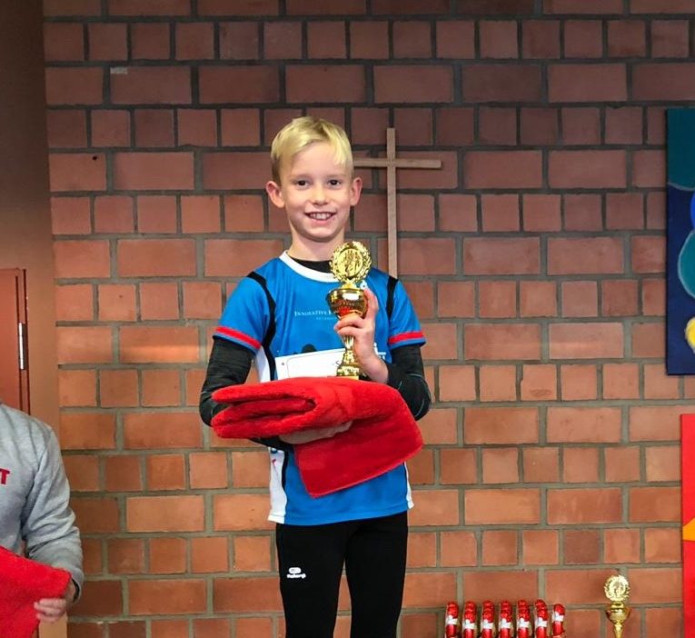 Er gewann über die 1,5 km die Altersklasse U10 in 5:35 Minuten.
