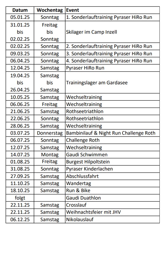 Veranstaltungskalender 2025 DOWNLOAD ALS PDF Details zu den jeweiligen Veranstaltungen, werden via Mail oder in den jeweiligen WhatsApp-Gruppen kommuniziert.